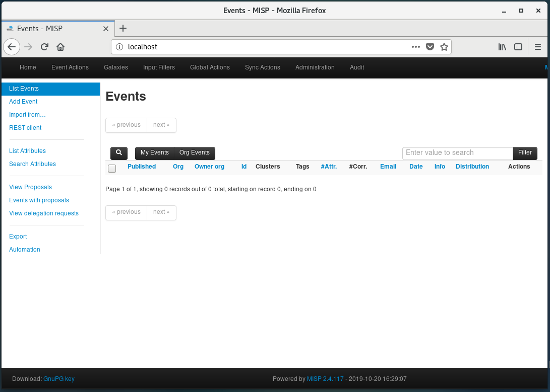 2019-10-20 16:23:52 Notice: Array to string conversion in [/var/www/MISP/app/Model/Log.php, line 205] Setting "Session.cookie_timeout" changed to 3600 [root@localhost ~]#