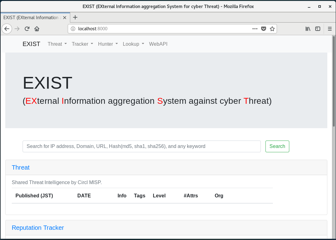 EXIST(EXternal Information aggregation System against cyber Threat)は NICT の NICTER 解析チームが開発しているサイバー脅威情報集約システムです。オープンソースソフトウェアとして公開されています。